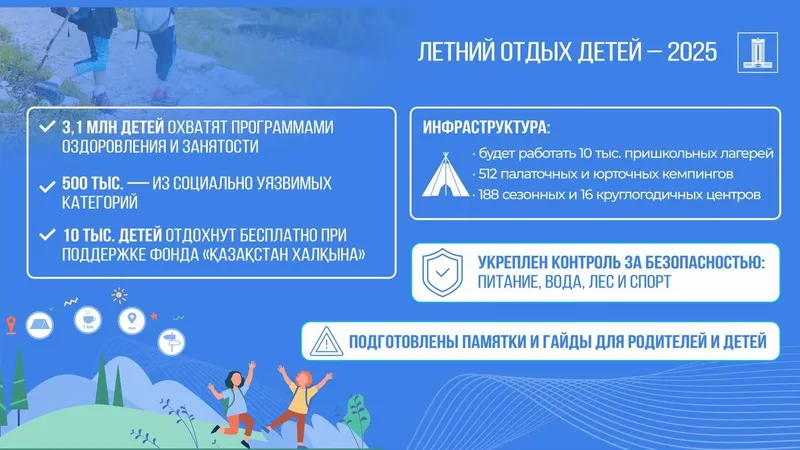 "Из них свыше 500 тысяч – дети из социально уязвимых категорий. Также при поддержке фонда "Қазақстан халқына" 10 тысяч детей получат возможность отдохнуть бесплатно", – отметили в пресс-службе правительства.