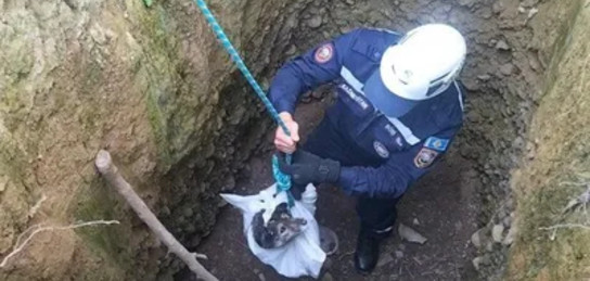 13 июля ночью в поселке Алтын-Дала животное упало в колодец. Предполагая, что это котенок, спасатели выехали на место. Используя альпинистское снаряжение и дыхательный аппарат, спасатель спустился на глубину 9 метров и поднял на поверхность испуганного, но невредимого щенка.