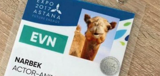 В Сети появилось забавное фото аккредитационного бейджа на выставку ЭКСПО 2017. На фото - верблюд, который, как оказалось, участвовал в шоу ко Дню столицы. Пользователей Facebook история с верблюдом, которая больше смахивает на анекдот немало насмешила, передает Zakon.kz
