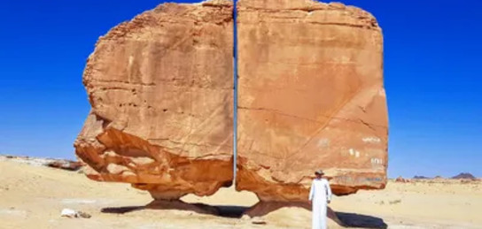 В оазисе Тайман в Саудовской Аравии лежит одно из самых загадочных геологических образований на Земле – на двух почти идеальных постаментах, находится огромный валун диаметром около 9 метров и идеально расколотый надвое, сообщает Zakon.kz.