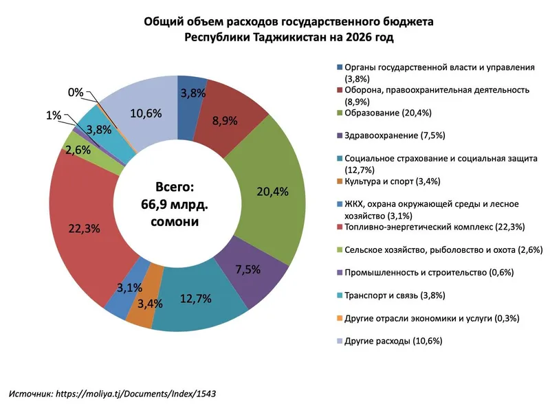 Таджикистан, напротив, делает ставку на энергию и инфраструктуру (22%) при сохранении почти половины бюджета (47%) на социальные цели.