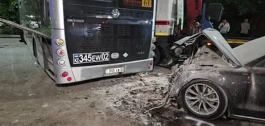Четыре человека пострадали в жуткой аварии с участием автобуса в Алматы