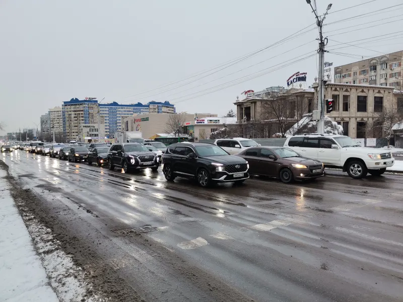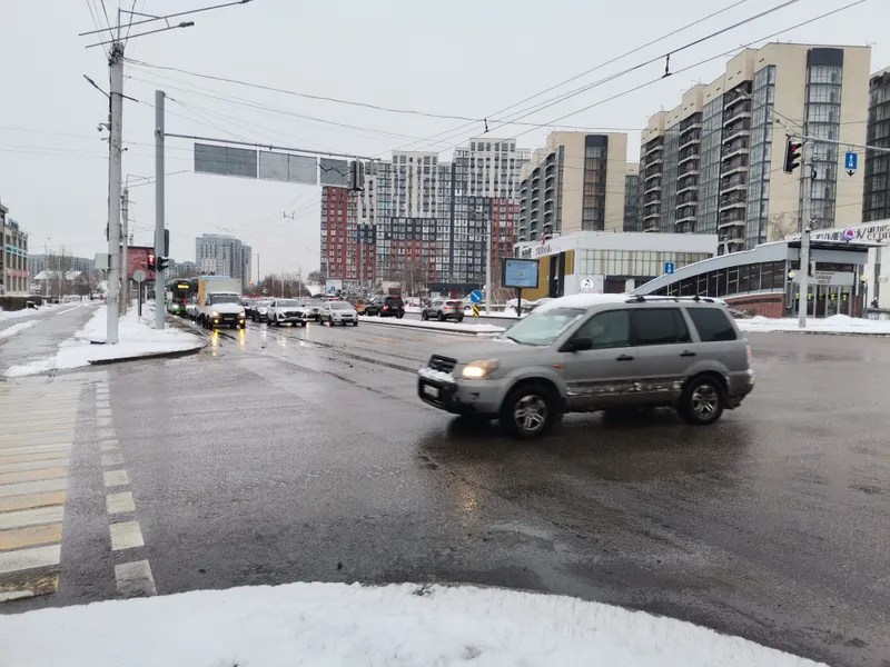 Выехать пришлось пораньше. Кто не успел, тот опоздал. С окраины до центра ехали вместо привычных 30 минут целый час. Автомобилисты говорят: движение затрудняет снежно-грязевая каша.