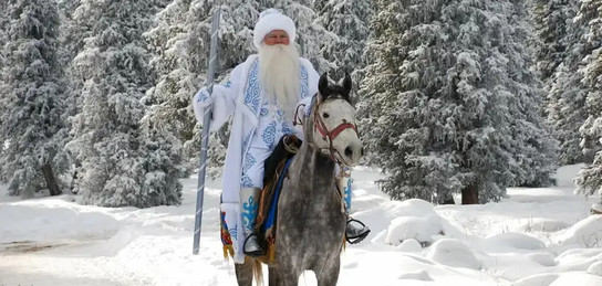 Казахского зимнего волшебника зовут Аяз Ата. Его резиденция расположилась в одном из красивейших мест страны – в 12 километрах от курорта Боровое. Предполагается, что прообразом казахского Мороза мог быть Кыдыр Ата. Это доисламский мифический персонаж у тюрков. Древнее божество, под ногами которого, куда бы он ни ступал, все расцветает. По легенде в ночь перед Наурызом он посещает дома добрых людей, и их потом ждут счастье и благополучие.