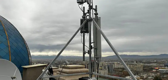 Чтобы связь была более качественной, а также могла охватывать больше потребителей, на крыше здания установлены 3 сектора базовых станции от компании Kcell.