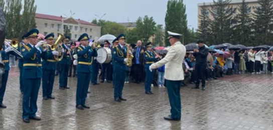 Также в целях формирования патриотического духа у молодежи, воспитания уважения к военнослужащим, ветеранам и защитникам Отечества, укрепления военных традиций и преемственности поколений, повышения престижа военной службы и воспитания чувства гордости за армию и страну, прошел строевой марш с участием духового оркестра ВЧ-6697, военнослужащих, учащихся школ и колледжей города. Всего в строевом марше приняли участие 280 человек.