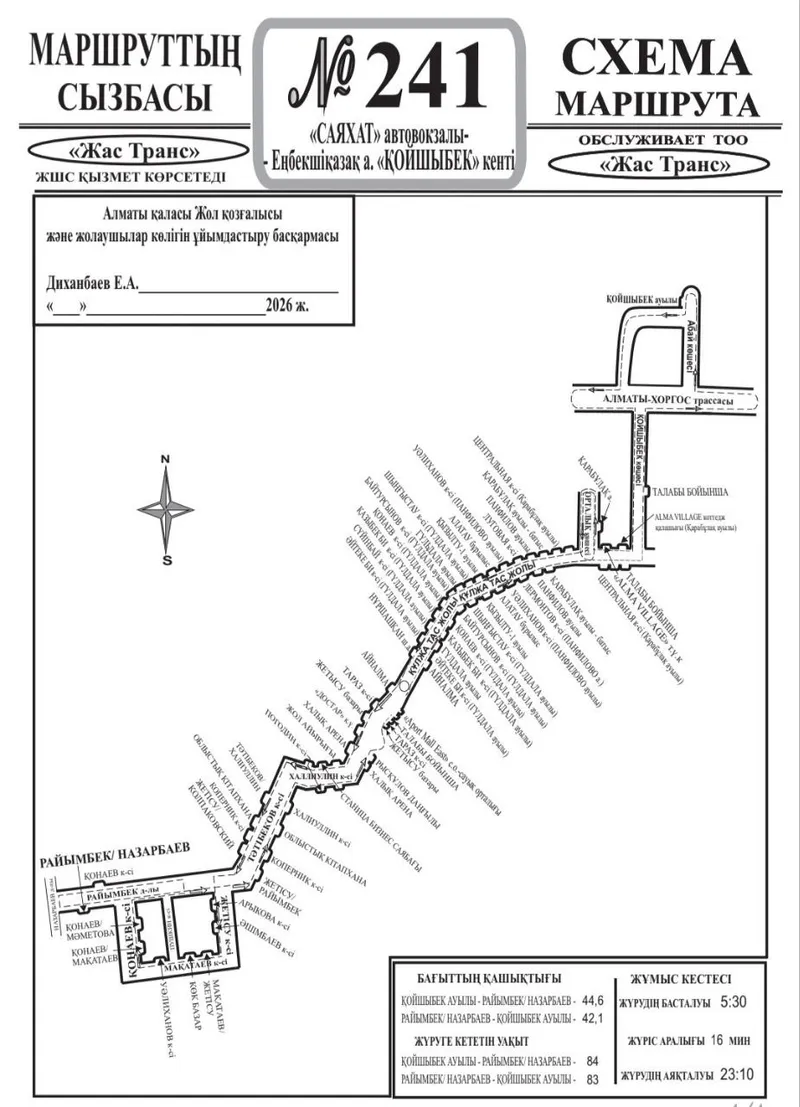 Популярный среди жителей Алматинской области маршрут – №241, соединяющий Алматы и пос. Койшибек, будет курсировать по новой схеме с 28 февраля 2026 года, сообщает Zakon.kz.