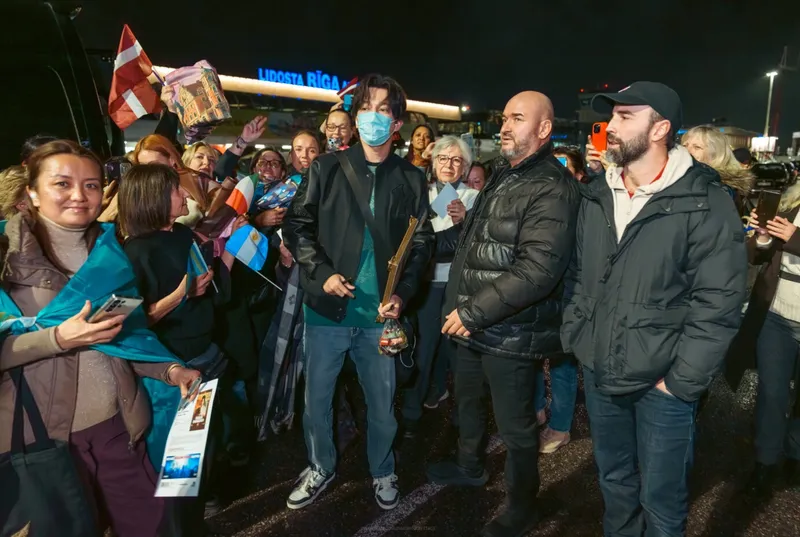 Во вторник, 9 декабря 2025 года, народный артист Казахстана Димаш Кудайберген прилетел в Ригу, где состоится его сольный концерт Stranger. Поклонники по традиции тепло встретили его в аэропорту и подарили традиционный латышский музыкальный инструмент кокле, сообщает Zakon.kz.