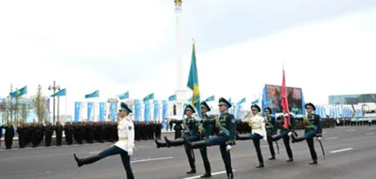 Флаг Казахстана и Знамя Победы торжественно вынесли на параде в Астане
