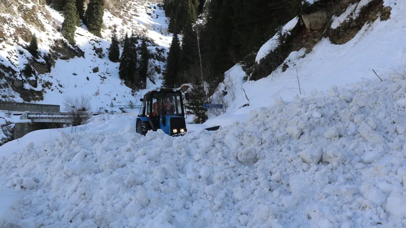 После подрыва точечного заряда взрывчатки многотонная масса снега обрушиваются вниз по склону, и в дело сразу же вступает тяжелая техника. Однако даже мощные тракторы в этом сезоне нередко работают на пределе возможностей – снега настолько много, что расчистка требует значительного времени и усилий.
