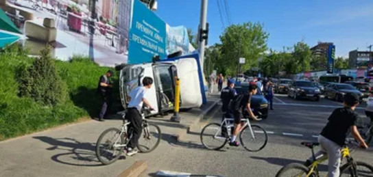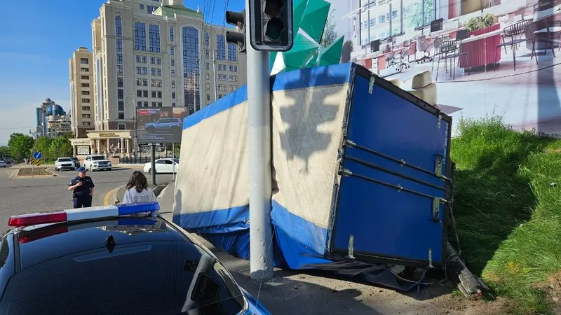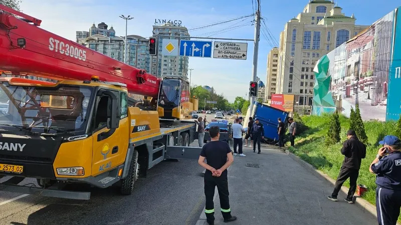 Грузовик с мусором опрокинулся в Алматы: водитель уходил от столкновения