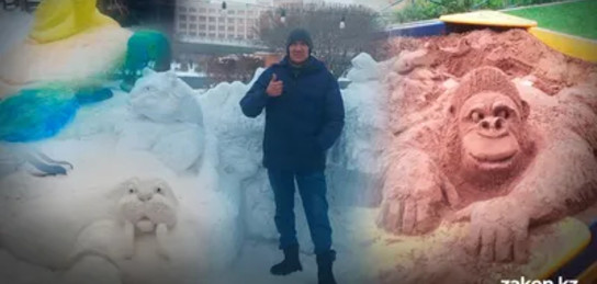 Искусство и мастерство: астанинский дворник круглый год создает скульптуры из снега и песка