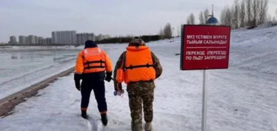 "Толщина льда на руслах реки Есиль составляет от 22 см, в отдельных местах 35-37 см ( район Центрального пляжа). В период новогодних праздников в целях соблюдения безопасности жителей просим воздержаться от выхода на лед".
