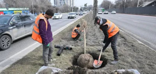 "Аппарат акима района реализует проект по строительству системы полива с обеих сторон проспекта – на южной и северной, а также проводит озеленение центральной разделительной полосы".