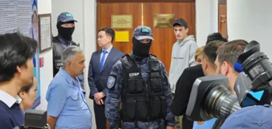 Свидетель в зале суда опознал троих обвиняемых: Нурбола Тоқтаубаева, Шынгыса Белгожаева и Нуркияса Ильясова.