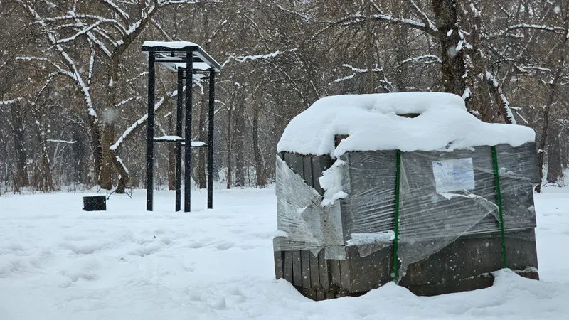 Сейчас строительные работы приостановлены. Без шума техники и движения рабочих пространство наполнилось тишиной. Заснеженные аллеи кажутся бесконечными, а все вокруг создает атмосферу зимней сказки, где каждый шаг слышен особенно ясно.