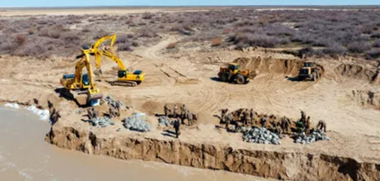 Канат Бозумбаев ознакомился с берегоукрепительными работами в селах Тургызба и Шокпартогай, затем посетил участок реки Жем, где сейчас укрепляют русло реки и канала Курсай. Также ведутся дноуглубительные работы протяженностью 95 км (Жем – 48,9 км, Курсай – 46,1 км). На сегодняшний день углубление русла реки Жем полностью завершено. Всего в Жылыойском районе задействовано 255 единиц техники. Организованы дежурные посты, работающие круглосуточно для мониторинга ситуации на дамбах. Дополнительно в район направлены силы и спецтехника из ДЧС Мангистауской области, воинских частей Министерства обороны Атырауской, Актюбинской областей и Департамента полиции Атырауской области.