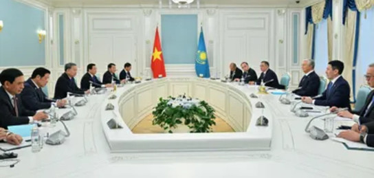 Президент Казахстана Касым-Жомарт Токаев и генеральный секретарь Центрального комитета Коммунистической партии Вьетнама То Лам провели переговоры в узком составе, сообщает Zakon.kz.