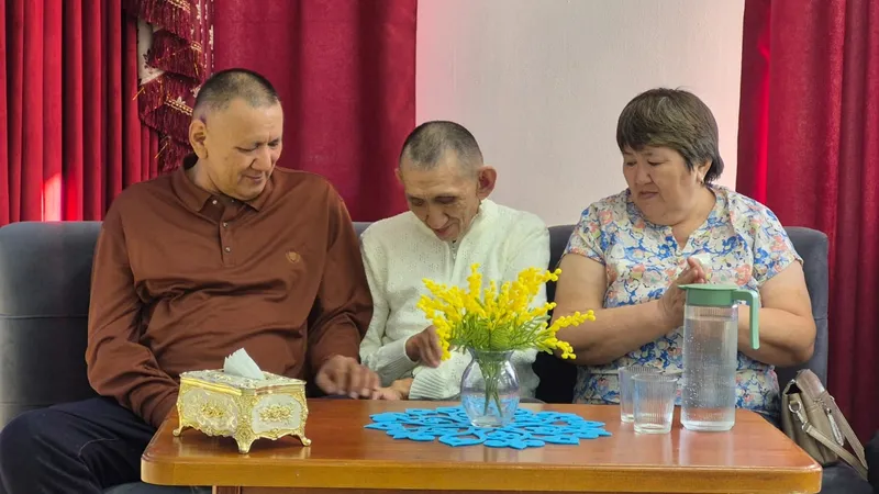 Сегодня, 24 февраля 2026 года Жетписбай приехал в центр уже не один, а вместе с супругой, братом и сестрой. Здесь и состоялась первая встреча родственников спустя более чем полвека.