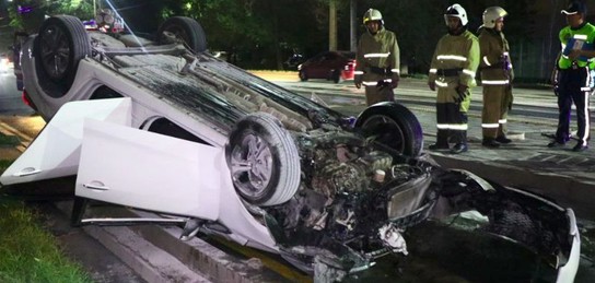 В ночь на 26 августа в центре Алматы автомобиль KIA Cerato, двигаясь по улице Темирязева, опрокинулся, перевернулся на крышу и загорелся. Травмы получил водитель автомобиля, сообщает корреспондент Zakon.kz с места происшествия.