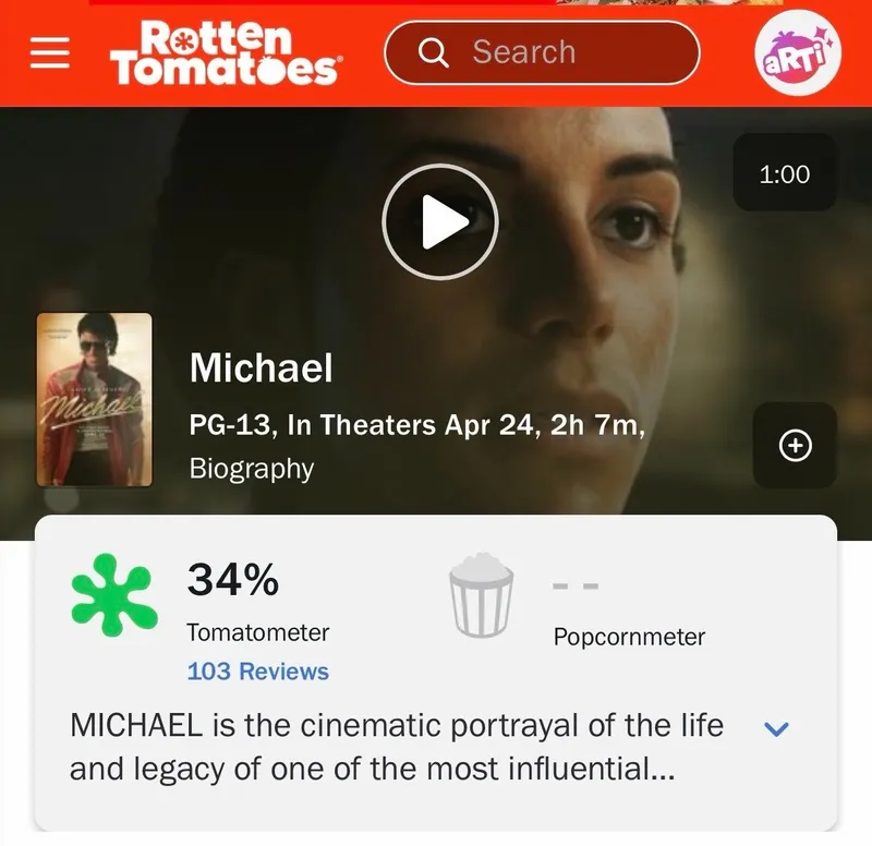 Фильм про Майкла Джексона стартовал с рейтингом 34% на Rotten Tomatoes.