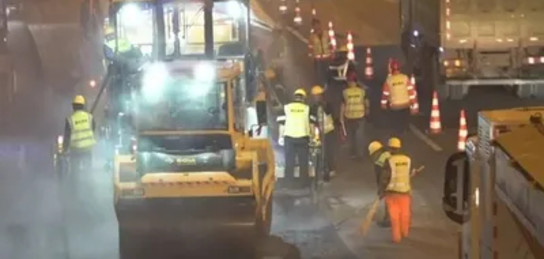 За одну ночь китайские рабочие уложили 8 тысяч тонн асфальта