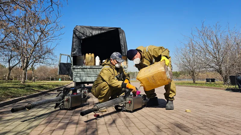 Дезинсекционные мероприятия проводит филиал РГП на ПХВ "Национальный центр экспертизы" – "Центр дезинфекции по городу Алматы" под контролем санитарно-эпидемиологической службы. Сформированные бригады полностью обеспечены необходимым оборудованием, транспортом и средствами индивидуальной защиты.