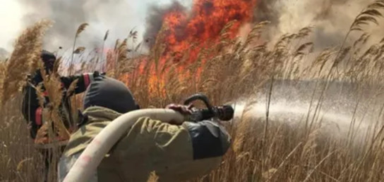 Горящий камыш тушат близ Атырау. Пожар бушует в 20 километрах от села Дамба на территории государственного природного резервата "Акжайык", сообщает Zakon.kz.