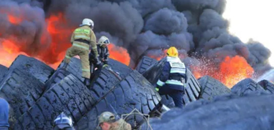 Крупный пожар тушат на заводе по выпуску резиновых шин в Алматинской области