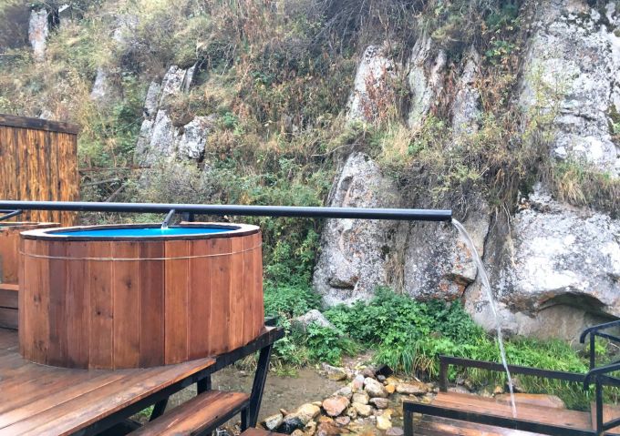 Кроме того, на территории источника имеются 2 бассейна с горной и минеральной водой, а также спортивная площадка.