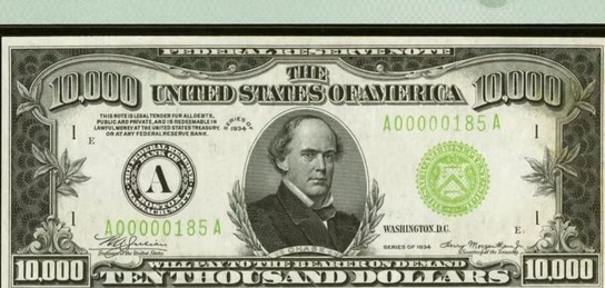 Купюру номиналом 10 тыс. долларов, выпущенную Федеральной резервной системой США в 1934 году, продали на аукционе за 480 тыс. долларов, сообщает Zakon.kz.