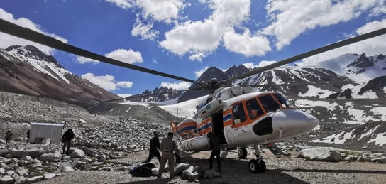 По результатам аэровизуального облета установлено, что в связи с повышением температурного фона происходит таянье снега на ледниках, которые освободились от снега примерно на 25-75%, при этом интенсивной абляции ледников не наблюдается. Моренные озера на стадии заполнения, уровень воды в них не достиг критических отметок, поверхностные стоки в пределах нормы, - говорится в сообщении ДЧС.