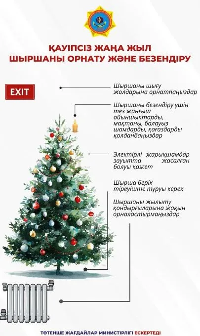 Министерство по чрезвычайным ситуациям (МЧС) Казахстана сегодня, 19 декабря 2025 года, обратилось к гражданам с важным напоминанием по поводу установки и украшения новогодней елки, сообщает Zakon.kz.