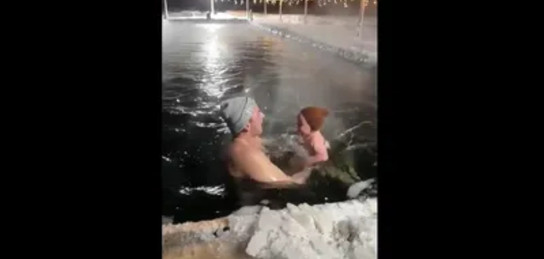 Молодой отец окунул годовалого ребенка в ледяную прорубь
