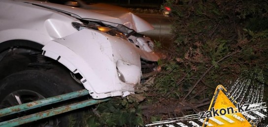 ДТП произошло при движении в западном направлении, возле Esentai Mall. Как рассказал сотрудникам полиции водитель, его подрезал и сигналил неустановленный автомобиль. Отвлекшись на эту машину, мужчина за рулем RAV4 наехал на декоративный забор из растений и снес рекламную конструкцию.