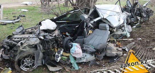 Авария случилась примерно в 5 утра на 98 км трассы по направлению Алматы-Бишкек, близ села Таргап. В сторону Алматы двигался BMW 5. На крутом повороте водитель не справился с управлением, и автомобиль через полосу встречного движения вынесло на обочину, где он врезался в два дерева.