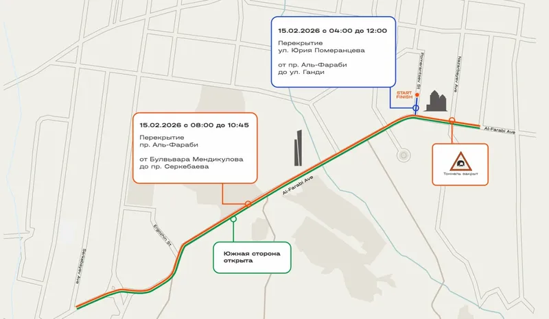В воскресенье, 15 февраля 2026 года, в Алматы будет частично ограничено движение. По данным пресс-службы городского акимата, это связано с проведением спортивного мероприятия, сообщает Zakon.kz.