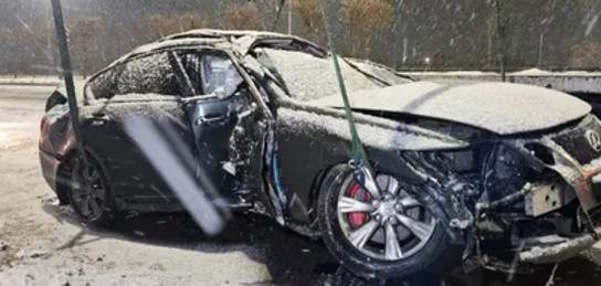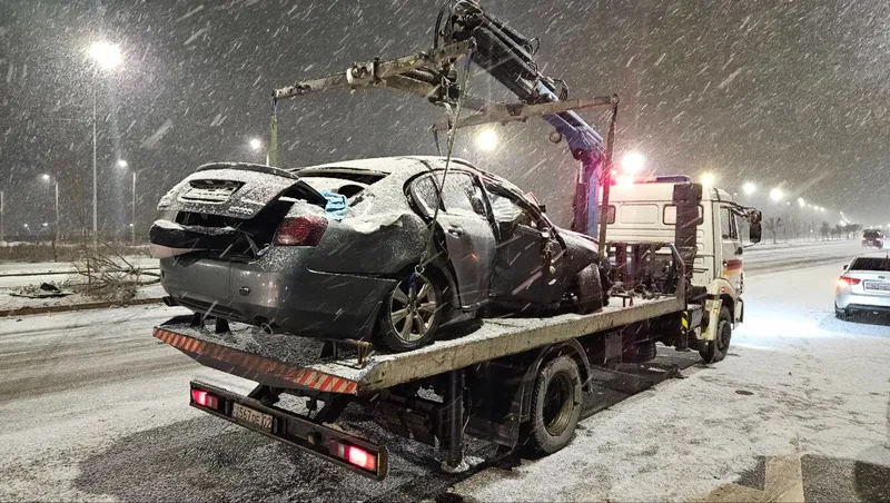 На заснеженной дороге в Алматы машина вылетела на встречную полосу: пассажир получил травму