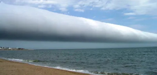 В Сети появилось удивительное видео, на котором заметно, как над морем в небе прокатывается валик из облаков. Горожане и отдыхающие на пляже не на шутку испугались, но были и поражены завораживающим зрелищем.