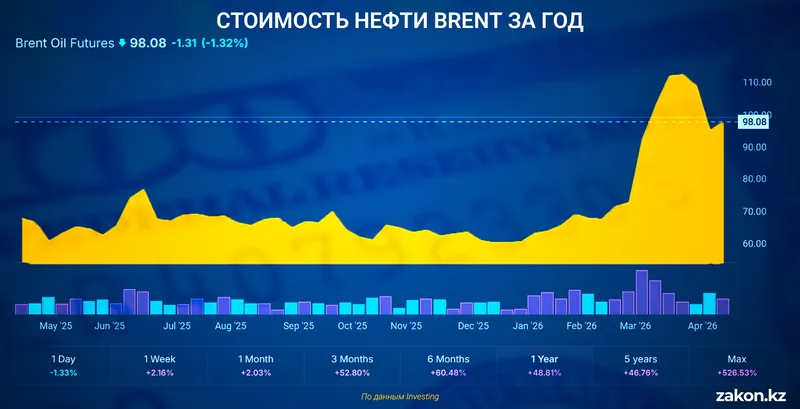 После резкого скачка цен из-за конфликта на Ближнем Востоке нефть марки Brent удерживается ниже отметки 100 долларов США за баррель и может снизиться еще. Как меняется баланс на рынке и что это означает для Казахстана – выяснял Zakon.kz.