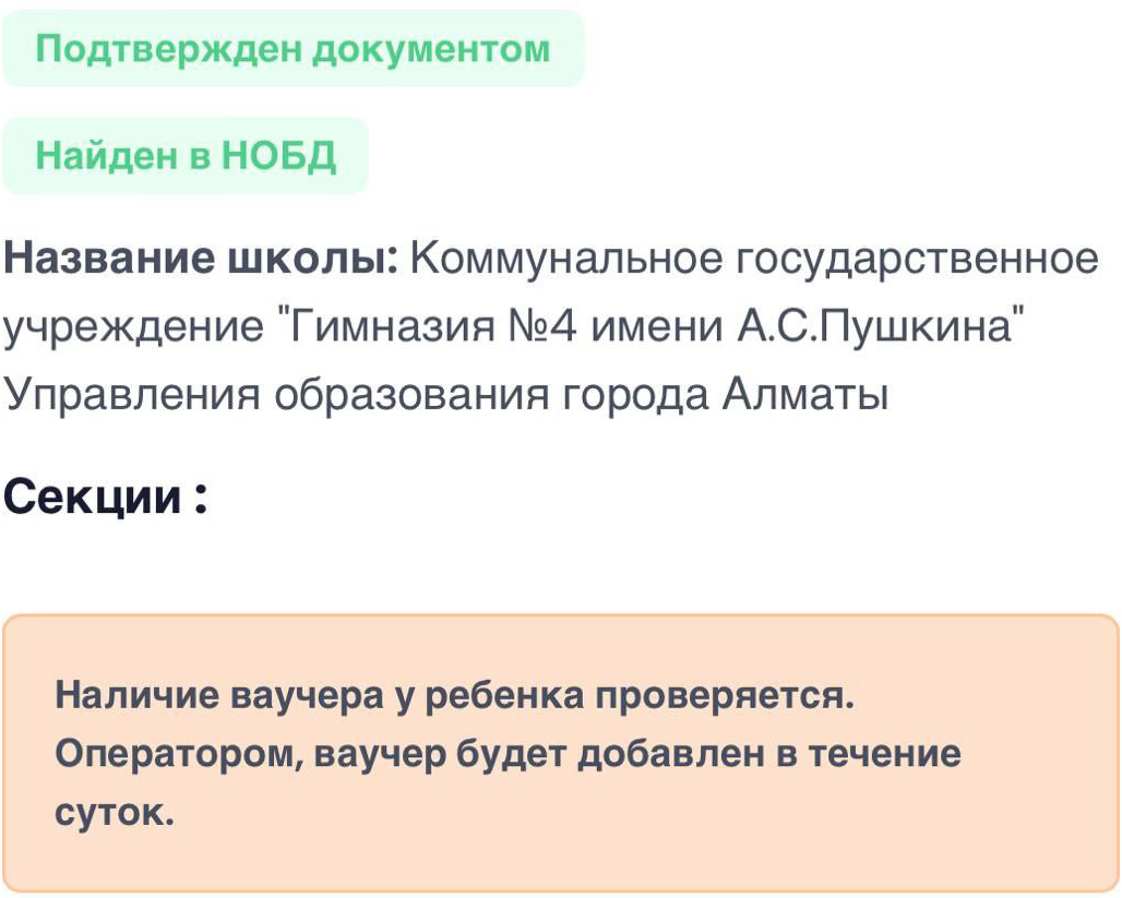 На примере одного из таких обращений мы проверили данные, выдаваемые платформой artsport.kz и самой базой НОБД и каково было наше удивление, когда выяснился факт предоставления недостоверных данных сайтом «DamuBala», указывающий на «поддельную» интеграцию, а, скорее всего, полное её отсутствие. Данные же платформы ArtSport.KZ и НОБД полностью совпадали.