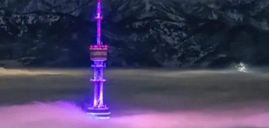 Ночной Алматы как в кино: телебашня Коктобе засияла сквозь туман и восхитила Казнет