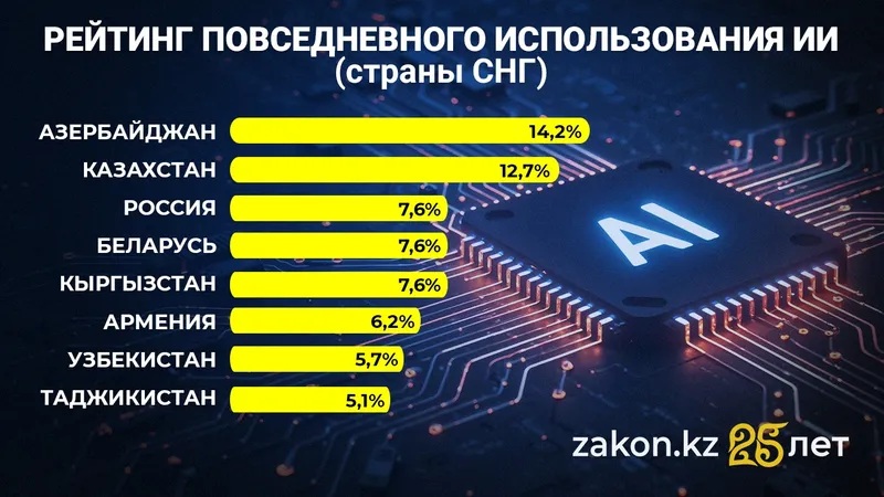 Выше Казахстана в рейтинге из постсоветских государств расположились: Литва (41-е место, где 21% населения пользуется ИИ), Грузия (53-е место с 17,3% вовлеченного населения), Молдова (58-е место с 16,6% вовлеченного населения) и Азербайджан (64-е место с 14,2% вовлеченного населения).