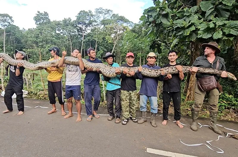 На острове Сулавеси в Индонезии нашли самую длинную змею планеты в конце 2025 года. Самку сетчатого питона (Malayopython reticulatus) прозвали "Ибу Барон" ("Баронесса") и уже 4 февраля 2026 года внесли в Книгу рекордов Гиннесса, сообщает Zakon.kz.