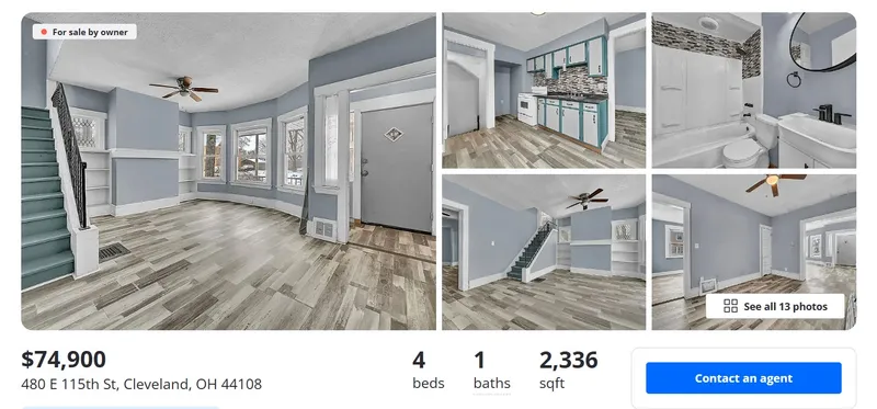 В штатах вроде Ohio, Michigan или Pennsylvania, в городах типа Cleveland, Detroit или пригородах Pittsburgh за 60–80 тыс. долларов реально найти дом площадью 70–100 квадратных метров, иногда даже с небольшим участком. На первый взгляд это выглядит как сильный контраст: вместо небольшой квартиры – полноценный дом.