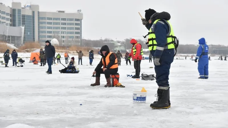 С первыми лучами солнца лед в центральной части города оживает. На поверхности появляются разноцветные палатки, со всех концов доносятся негромкие разговоры и смех.
