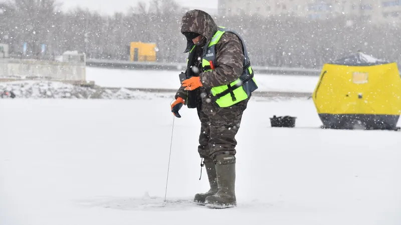Зимой одним из самых популярных увлечений среди жителей Атырау остается подледная рыбалка. Несмотря на мороз, ветер и снег, горожане выходят из теплых квартир и с раннего утра занимают места на льду: сверлят лунки и терпеливо ожидают клева.