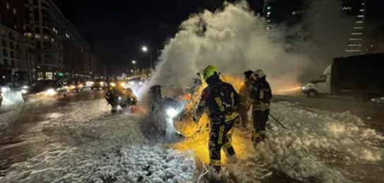 Открытым пламенем вспыхнул автомобиль на оживленном проспекте в Астане