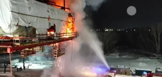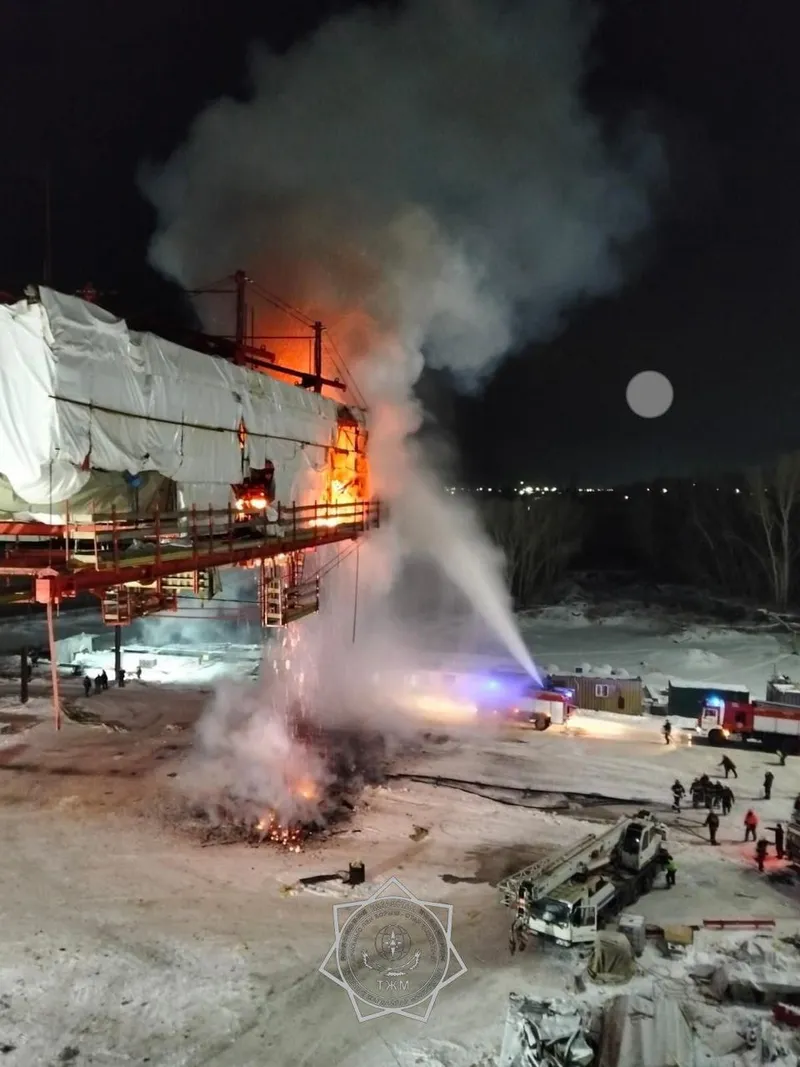Открытым пламенем вспыхнул строящийся мост над Иртышом в Павлодаре