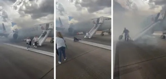 WATCH: Landing gear of American Airlines plane catches fire at Denver airport, passengers evacuated pic.twitter.com/507eeWhfmg